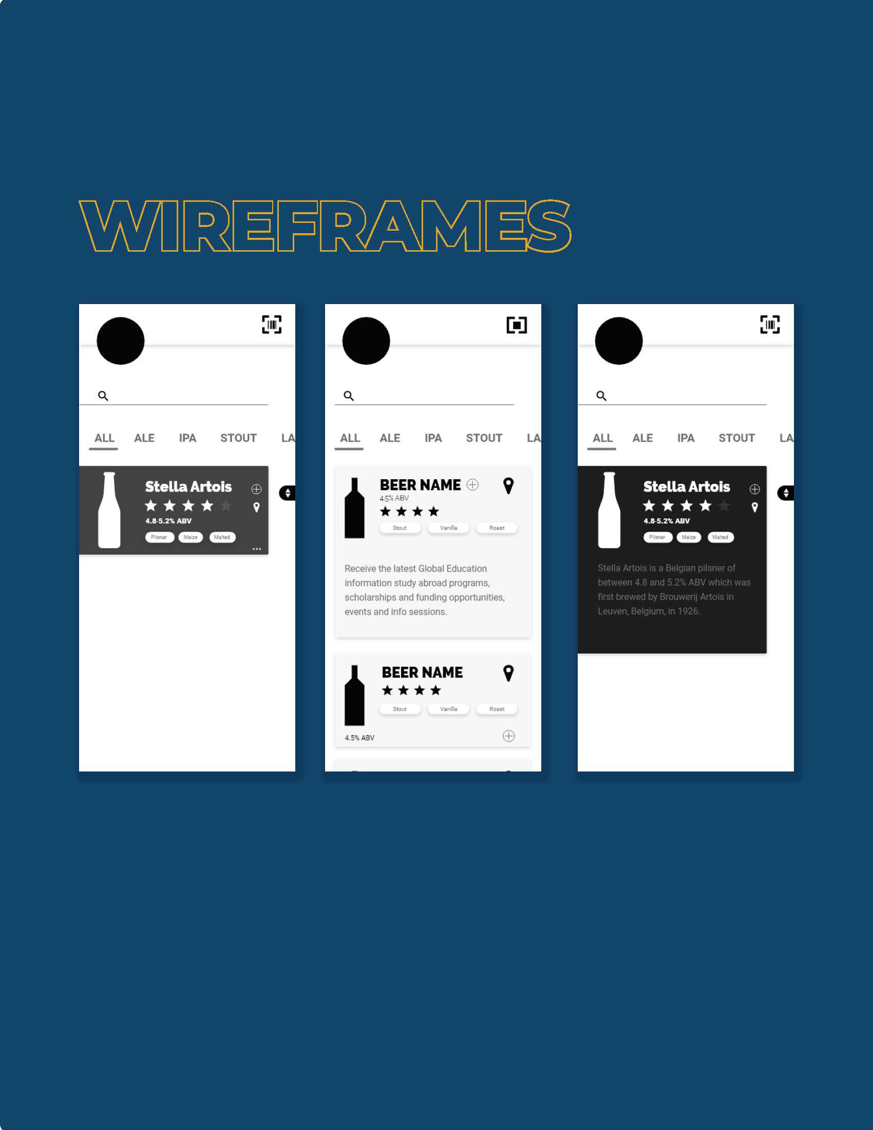 Below is a prototype of the app I designed from our research. It only has a few functions; search, map, tag system, and finding more information about a specific beer.